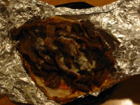 So what is a donair? It's a Mediterranean-style pita-bread sandwich of uncertain provenance. The donair is similar to a gyro, except that the meat is beef, not lamb, and the sauce more resembles honey mustard salad dressing than the cucumber dill of tzatziki. While it most likely came from Greece, Turkey, or Lebanon, the donair has achieved ubiquity in Halifax, starting in the 1970s. Any restaurant that sells pizza likely sells donair too, and some even advertise package deals, though I would advise against purchasing from any shop that promises to deliver "2 medium donairs" unless you wish to re-think your perception of "medium." You can even pick up donair meat and sauce at the supermarket. And if you're not lucky enough to live in the SuperCity, home of the world's most capricious weather, you can make it from scratch (see the link below).
